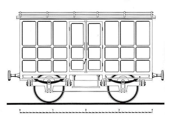 Bagagewagon 12 van de H.S.M. uit 1841. De bagagewagon 11 beviel niet. Het was ook eigenlijk een vertimmerde 'char a banc' (zie elders). Daarom besloot de H.S.M. in 1841 tot de indienststelling van twee nieuwe bagagewagons volgens het model van de Belgische spoorwegen. Er werd echter wel gebruik gemaakt van het oude onderstel. De modellen. Deze modellen zijn gebouwd in schaal 1:87 (ook breedspoor). Gebruikte materialen zijn met name Polystyreen (in plaat en profiel) en dun messingdraad.