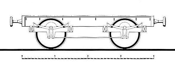 De platte wagon. Daterend uit 1840. Deze tot de groep 'platte wagons' behorende wagon werd gebruikt voor het vervoer van balen, kisten, tonnen e.d. Op een aantal van deze wagons werden voorzieningen aangebracht om koetsen te vervoeren (zie elders op deze site).